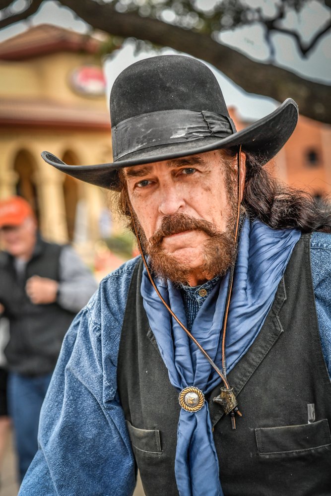 March 23rd photowalk was a great success at the Fort Worth Stockyards, even with the 60% chance of rain. Since we had plenty of cover in case it rained we decided to have it either way. My thought, ” take what the Universe gives you and use it.” We didn’t have clear Skys but the overcast was like a giant soft box, no shadows, a portrait photogs dream. We concentrated on people and portraits using the characteristic background of the old.