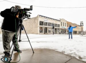 “Stop…” Joe shouted as I made my way towards the corner.  The snow on the road was unbroken…not a footstep nor tire track to disturb the site before our eyes. This shot screamed the need to be undisturbed. Earlier in the morning we shot footsteps in the snow, leading towards Trinity Street Coffee Bar and Rooster’s Roadhouse.  For this image, he wanted something different.